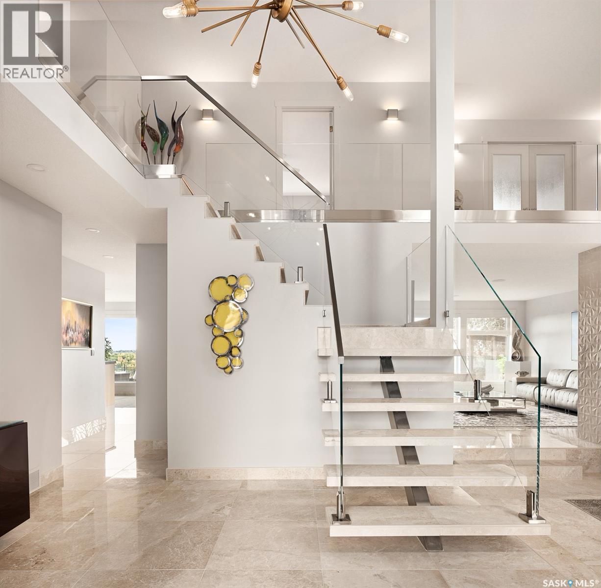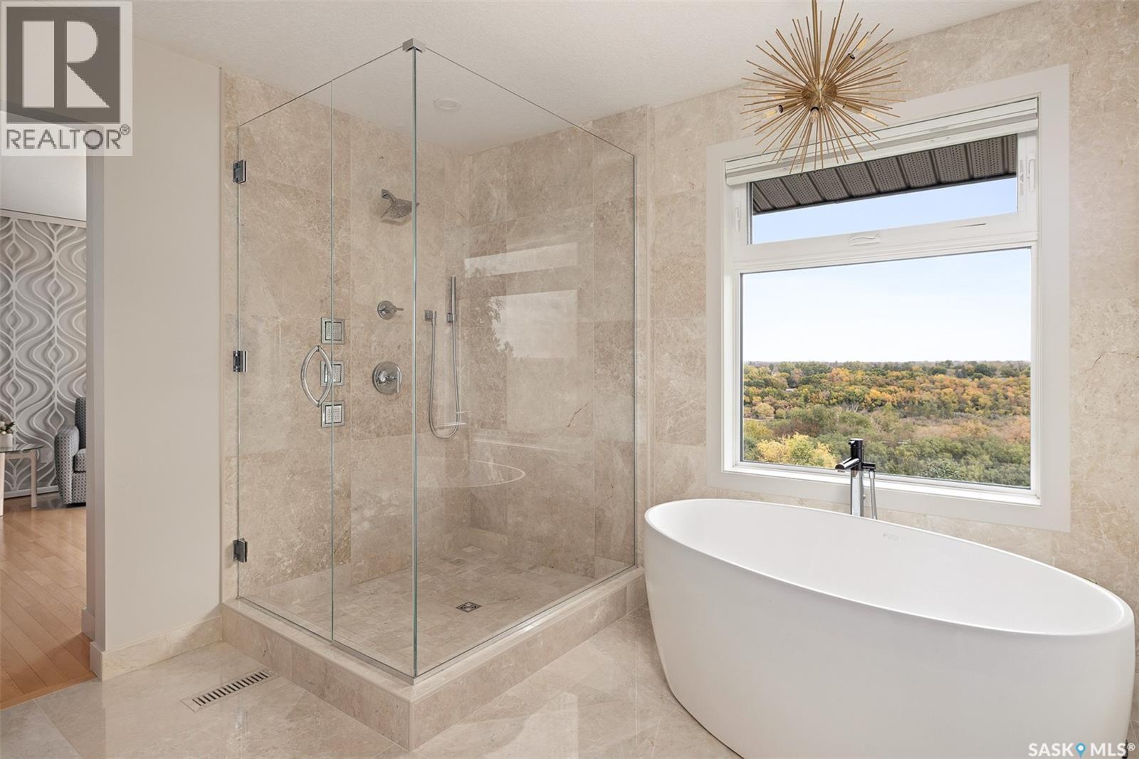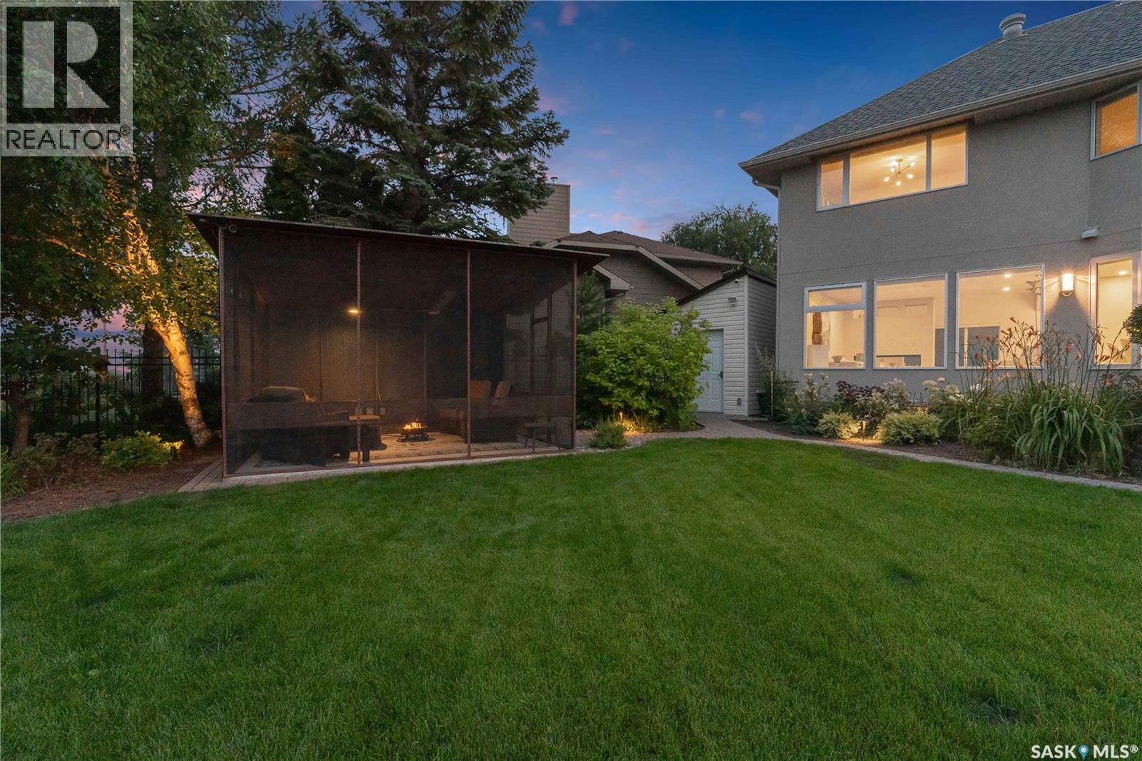 Rare riverfront lot just steps away from the S Sask River seamlessly integrates urban living with breathtaking sunrises, sweeping vistas, walking paths and the sounds of nature. Modern architecture meets Meewasin heritage with a 5-bedroom, 4-bath, and triple garage home. Extensively renovated from the foundation up, find floating steel stairs, 24×24 marble flooring and natural light flowing from the 52’ wall of continuous river view windows. The chef’s kitchen feels like the heart of the home- a gas fireplace oversees a 13’ kitchen island, Sub-Zero, Wolf and Miele appliances, a prep counter with 2nd sink and a walk-in pantry. The primary suite is your private retreat to enjoy your morning coffee on your balcony or in front of the gas fireplace. The attached ensuite has seamless marble throughout, and the bathtub is below a window for private viewing of the riverbank. The basement hosts a yoga/theatre room and a professionally developed gym with commercial flooring. Advanced mechanical, smart home, lighting, security, Lutron shades, 2 electrical panels, 3 gas fireplaces, steam sauna, audio and video systems throughout, and so much more. Boasting 100 linear feet of backyard encased in custom bronze-toned metal fencing with low-maintenance landscaping and watering. A large patio surrounded by perennials with natural gas for a fire table. A 170 sq ft solid steel and screen 3-season room equipped with an infrared heater for cool days and an automated ceiling fan for the warm days. The modern stone and stucco exterior, architectural Class 4 shingles and anodized aluminum triple-pane windows lend a quiet sophistication to the original design style. Anodized aluminum commercial-grade insulated doors lead you into a 3-car gas-heated garage with an epoxy floor. Walking distance to the Silverwood golf course, 4 elementary and 2 high schools, shopping, and restaurants. COPY AND PASTE VIDEO TOUR LINK TO TOUR THIS HOME -> https://www.youtube.com/watch?v=DvMdn_k-aNQ (id:17834)